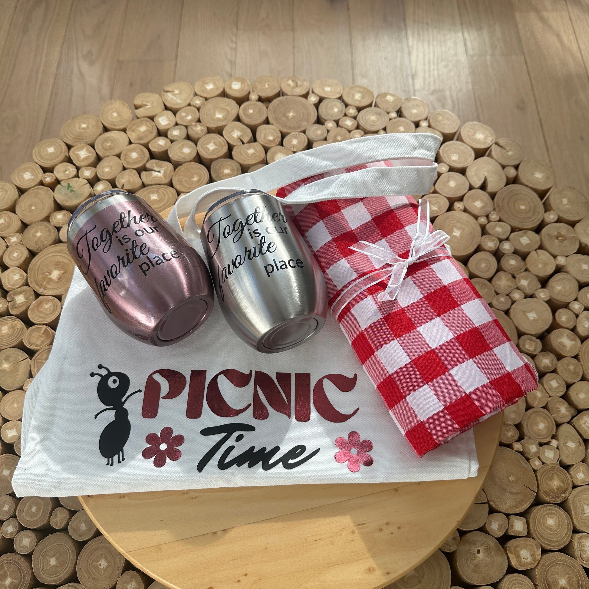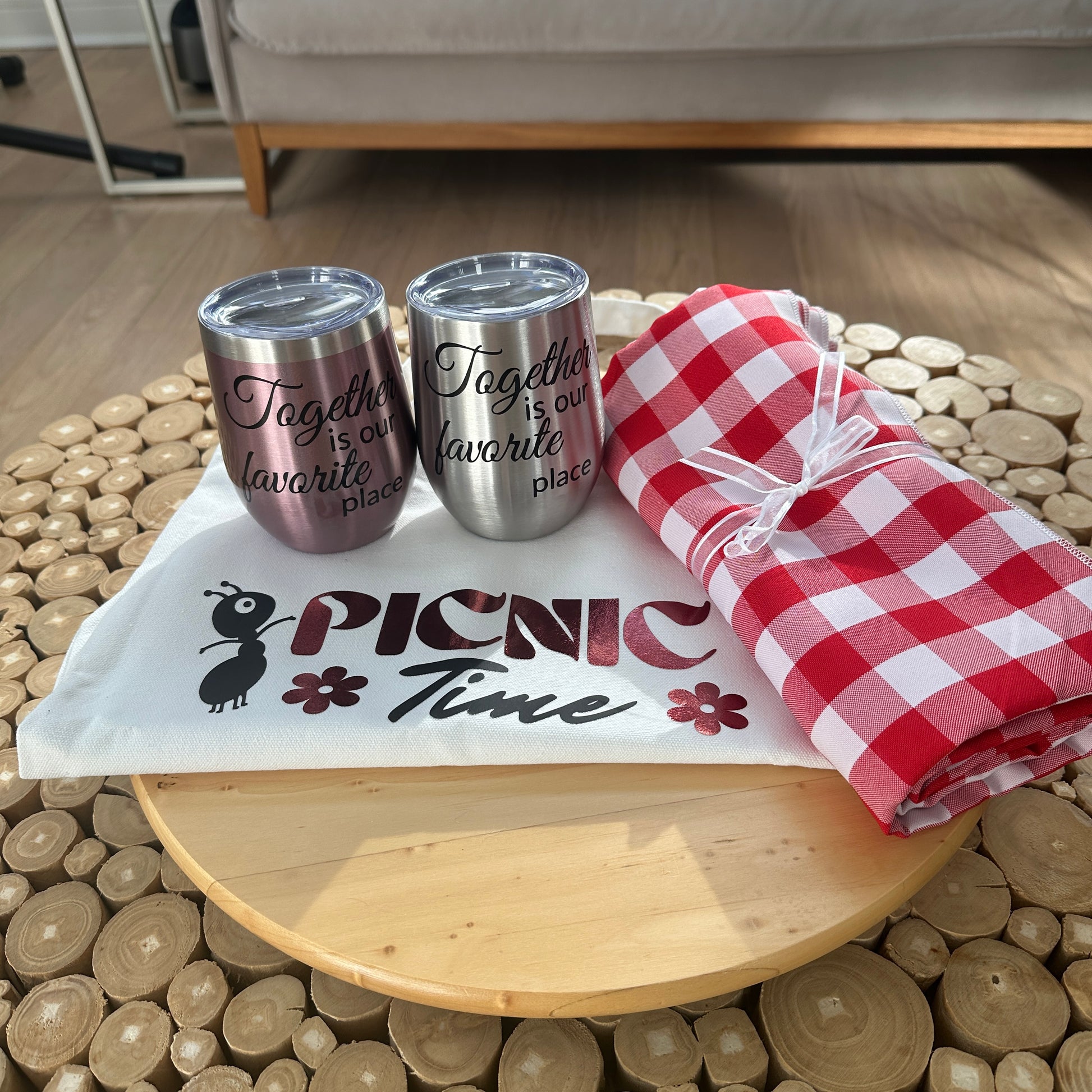 • 🍷 Two “To-Go” Wine Tumblers with the quote “Together is our favorite place” - elegant, unbreakable, and perfect for outdoor use